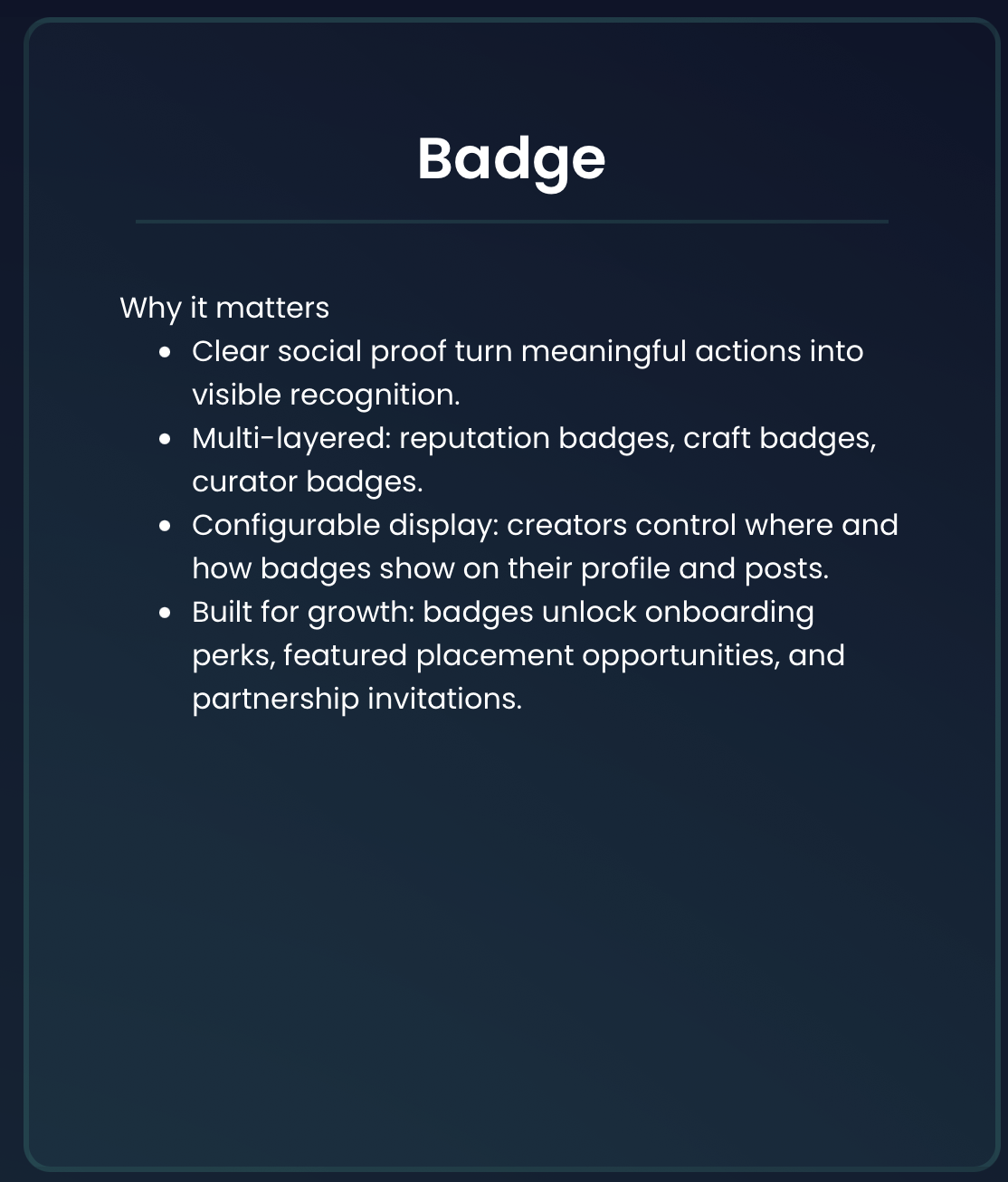Achievement system rewards meaningful contributions instead of chasing likes.
